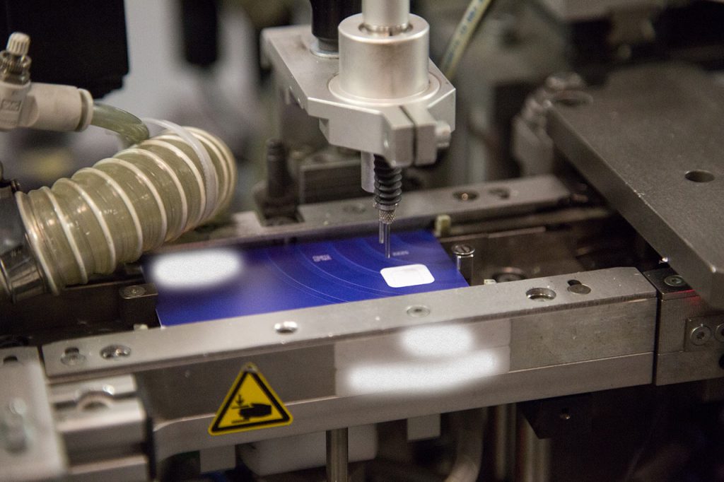 В связи с тем, что печатные машины обычно имеют ограничение по толщине носителя порядка 400 мкм, а стандартная карта должна иметь толщину около 800 мкм, печать в основном производят на пластике толщиной от 100 до 320 мкм. Листы пластика, с отпечатанными изображениями фронтальной и тыльной сторон карт, склеивают в ламинационных прессах. Внешние стороны карты при этом защищают тонкой прозрачной ПВХ пленкой толщиной от 60 до 100 мкм. Для печати изображений как правило используют листы ПВХ. Например, для получения стандартной толщины карты 760 мкм, можно следующую использовать следующую 4-х слойную структуру.