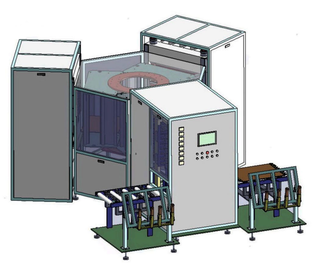 2-башенный ламинатор с автоматической карусельной системой загрузки и выгрузки лотков. Обеспечивает высокую производительность и равномерное распределение давления по всей площади плит.
